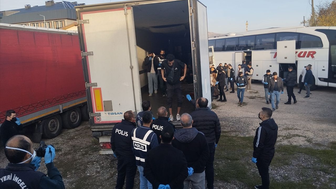 SİVAS (AA) - Sivas'ın Suşehri ilçesinde yasa dışı yollarla yurda girdiği belirlenen Afganistan uyruklu 28 düzensiz göçmen yakalandı, göçmen kaçakçılığı iddiasıyla gözaltına alınan 1 tır şoförü tutuklandı.