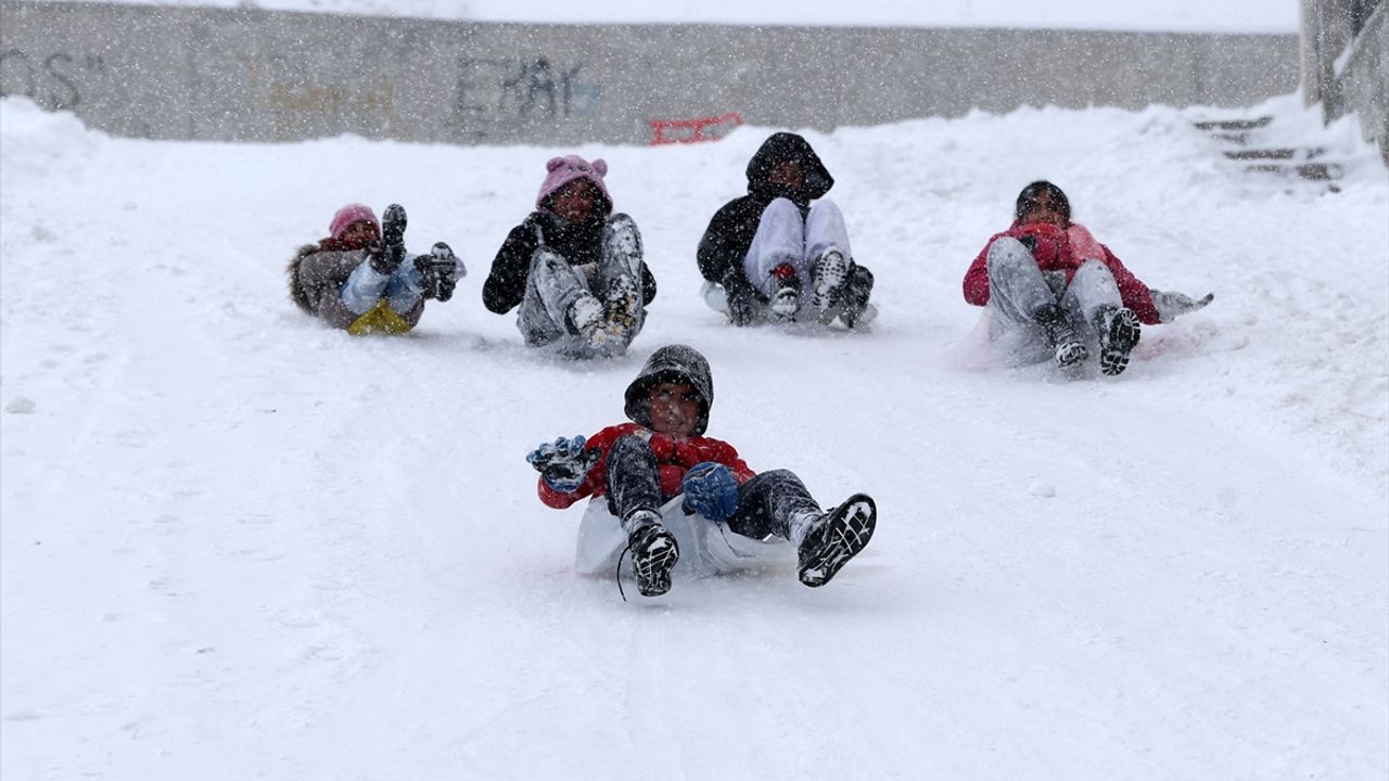 Hayatı olumsuz etkileyen kar, çocukların eğlencesine dönüştü.