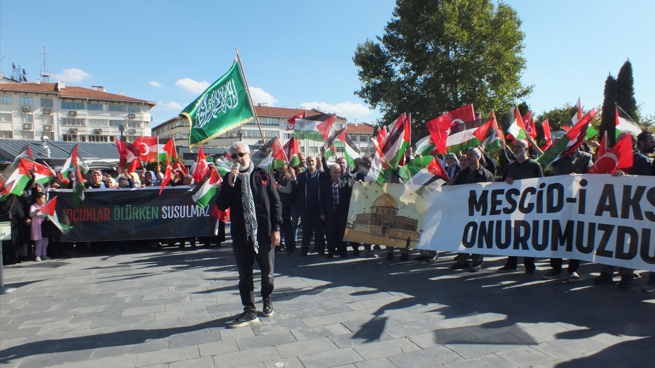 Cumhuriyet Meydanı'nda düzenlenen etkinlikte konuşan Dernek Başkanı Efe Zileli, İsrail'in yaptığı zalimliği kınadı.