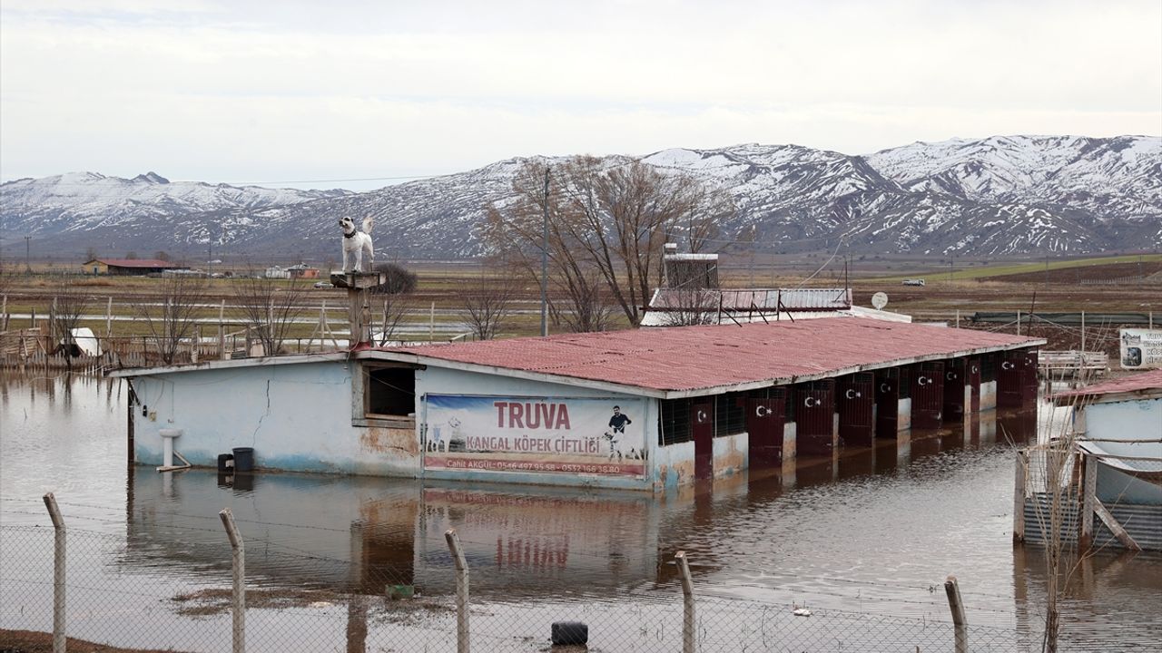 SİVAS (AA) - Sivas'ta bir Kangal köpeği çiftliği karların erimesi nedeniyle su altında kaldı.