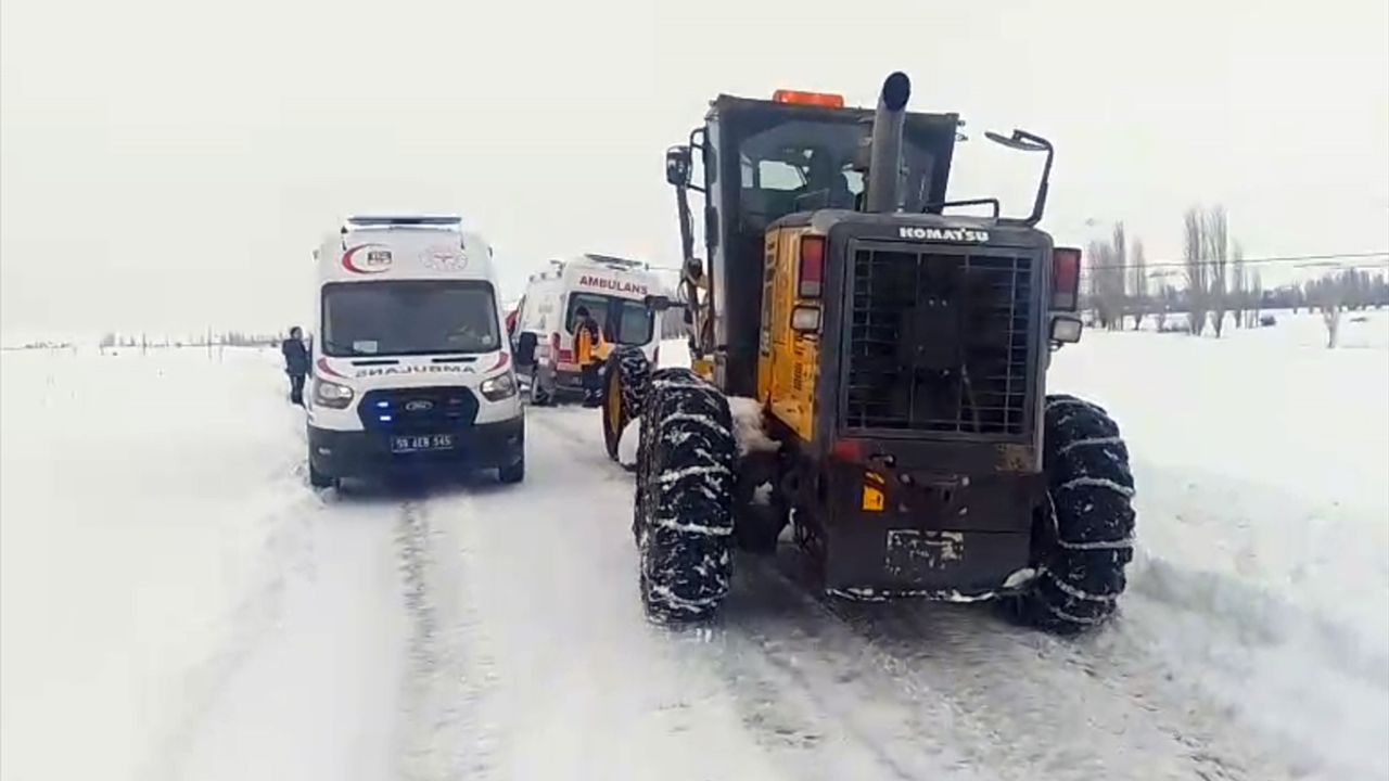 İlçeye bağlı Eskiyurt köyünde bulunan hastayı almak için yola çıkan sağlık ekipleri, kar ve olumsuz hava koşulları nedeniyle yolda kaldı.