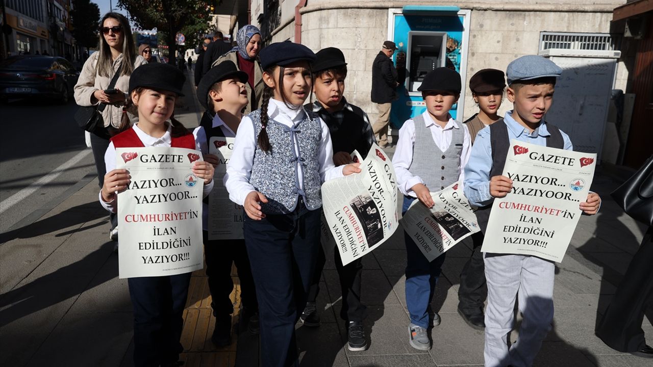 SİVAS (AA) - Sivas'ta öğrenciler Cumhuriyet'in ilan edilişinin temsili gazetesini vatandaşlara dağıttı.