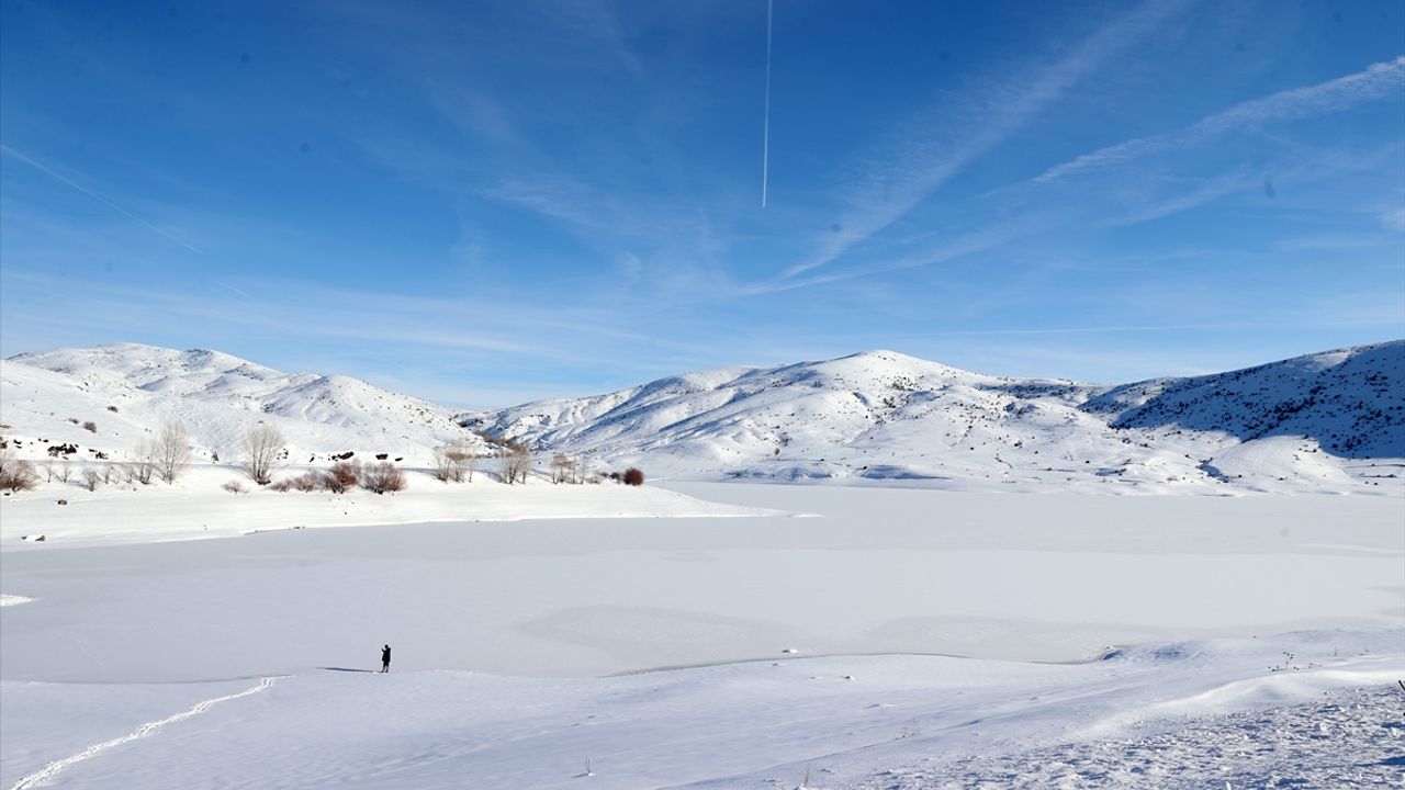 Hava sıcaklığının sıfırın altında 14 dereceye kadar düştüğü Sivas'ta, kent merkezine yaklaşık 50 kilometre uzaklıktaki 2 bin 552 rakımlı Yıldız Dağı'nın güneyinde yer alan Yıldız Göleti'nin yüzeyi soğuk havanın etkisiyle buz tuttu.