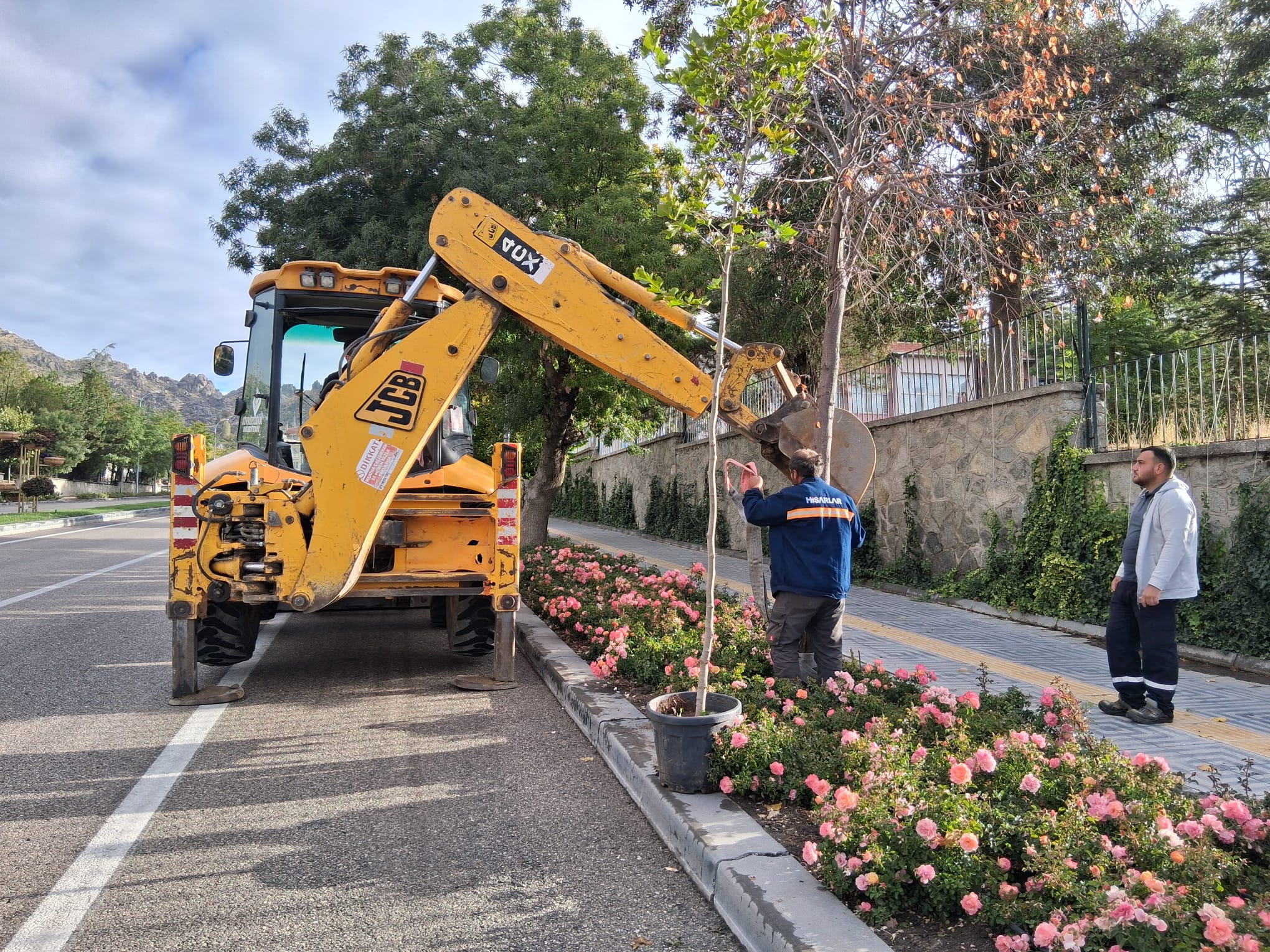 Ekipler, Atatürk Bulvarı üzerinde kuruyan ağaçları sökerek yerlerine yeni fidanlar dikti. Ayrıca yol boyu tüm yeşil alanlarda budama, bakım ve temizlik çalışmaları da aralıksız devam ediyor.