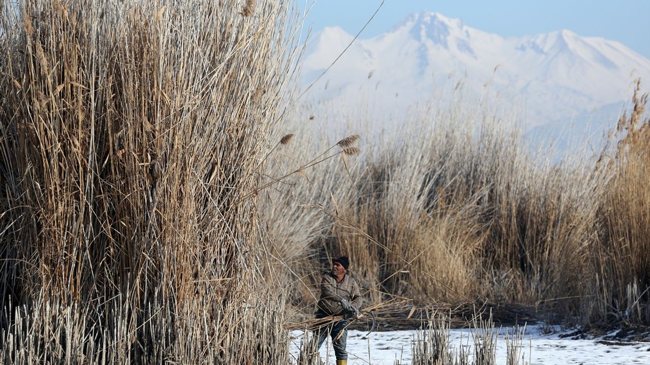 Göçmen kuşların uğrak merkezlerinden biri olan Erciyes Dağı eteklerindeki Sultan Sazlığı'nda yetişen kamışların hasadı, kış mevsiminde bölge halkı tarafından yapılıyor.