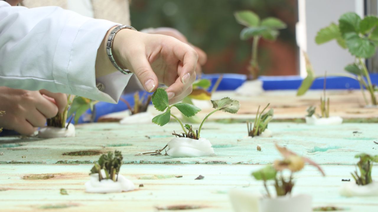 Bu çerçevede geliştirilen biyomineral solüsyonlar, laboratuvar ortamındaki 3 metrelik havuzlarda 200 litrelik su tanklarının içinde su mercimeği yetiştirilmesinde kullanılıyor. Bu besinin kuru ve yaş haliyle beslenen Japon balıklarının gübresi de başka bir havuzdaki çilek fidelerine aktarılıyor.