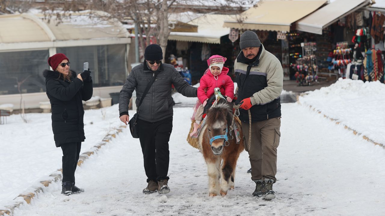 Ailesi ile İzmir'den bölgeye gelen çocuklardan Eslem Karakuzu ise ilk kez ziyaret ettiği Kapadokya'da doğanın sunduğu manzaraya hayran kaldığını kaydederek, 'Ailem karne hediyesi olarak Kapadokya'ya getirdi. Çok mutluyum kar da görmüş olduk. Bence burası çok güzel bir yer.' dedi.