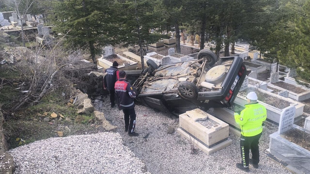 A.D. idaresindeki 06 U 0587 plakalı otomobil, Eskipazar Mahallesi'nde kontrolden çıkarak Sarıtopraklık Mezarlığı'na devrildi.