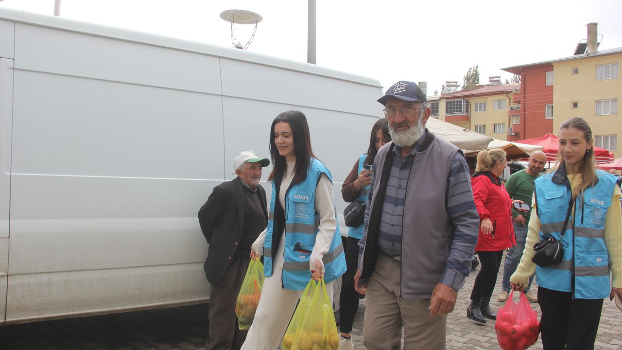 Zara Yurt Müdürlüğü tarafından hayata geçirilen proje ile KYK yurtlarında kalan öğrenciler ilçede kurulan halk pazarında alışveriş yapan yaşlı vatandaşların erzaklarını taşımalarına yardımcı oldu.